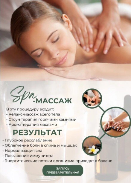Когда возникает сильное чувство усталости, специалисты советуют снять напряжение. Поэтому мы предлагаем вам попробовать СПА-процедуры, массаж. СПА-уход - это, пожалуй, одна из самых популярных методик заботы о своём теле и внешнем виде. Комплексы с массажем, чистками или иным уходом - выбирайте то, что вам по вкусу! Хватит даже одного сеанса, чтобы восстановиться и набраться. Но если вам нужен пролонгированный результат, вам стоит периодически заботиться о себе таким способом!
